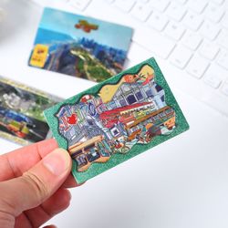 Tùy Chỉnh Lưu Niệm Thành Phố Tên Trang Trí Du Lịch MDF Epoxy Nhựa Nam Châm Tủ Lạnh Bằng Gỗ Sáng Tạo 3D Tủ Lạnh Nam Châm